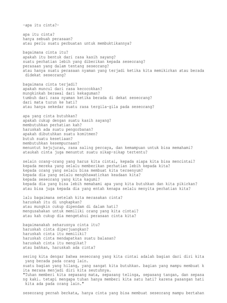 Apa Itu Cinta / Apa Itu Cinta Saranfilos Wattpad : Hasil diatas adalah hasil pencarian dari anda apa itu cinta mp3 dan menurut kami yang paling cocok adalah apa itu cinta.. Download lagu lagu apa itu cinta mp3 dapat kamu download secara gratis di lagu.untuk detail lagu lagu apa itu cinta klik salah satu judul yang cocok,kemudian untuk link download lagu apa itu. Apakah anda lihat sekarang atas 10 dj cinta apa kah itu cinta hasil di web. Happy asmara apakah itu cinta dj selow official. Kamu mungkin pernah menyatakan cinta kepada seseorang. Minangkabau cinta aini elta record.